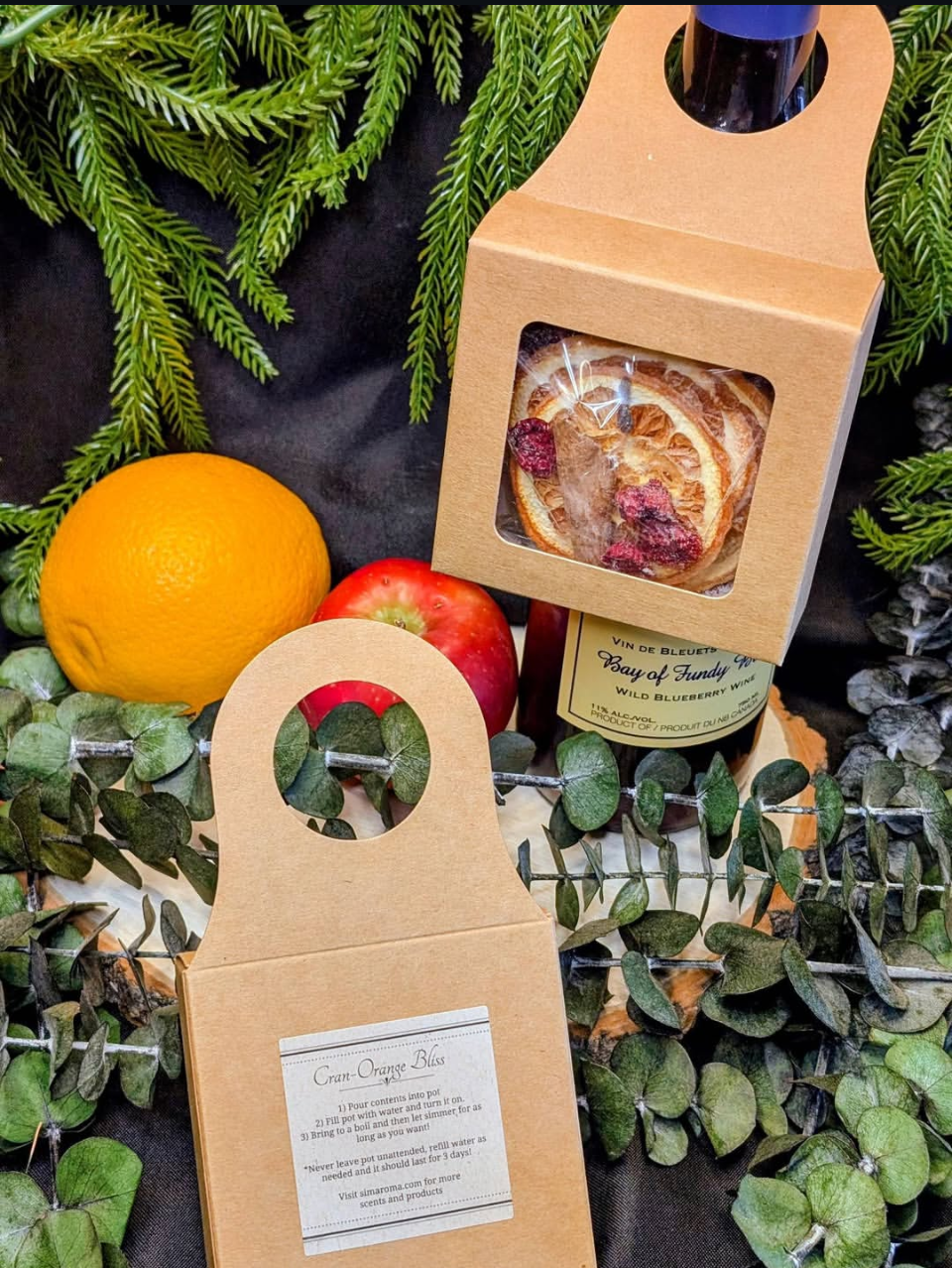 Cran-Orange Bliss Wine Hanger is a cozy blend of tart cranberries and bright orange layered with cinnamon, cloves, and smooth vanilla. Designed to hang perfectly on any bottle, it’s a thoughtful, effortless addition to wine gifts of all kinds. When simmered, it fills the home with natural fragrance that lasts 3–5 days.